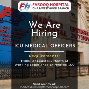 Getting the right job at the right place is a blessing in today’s world. The announcement made by Farooq Hospital for ICU Medical Officers is much more than a vacancy; it’s an opportunity to build up a meaningful medical career.