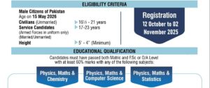 Only Male Citizens of Pakistan are eligible to apply.